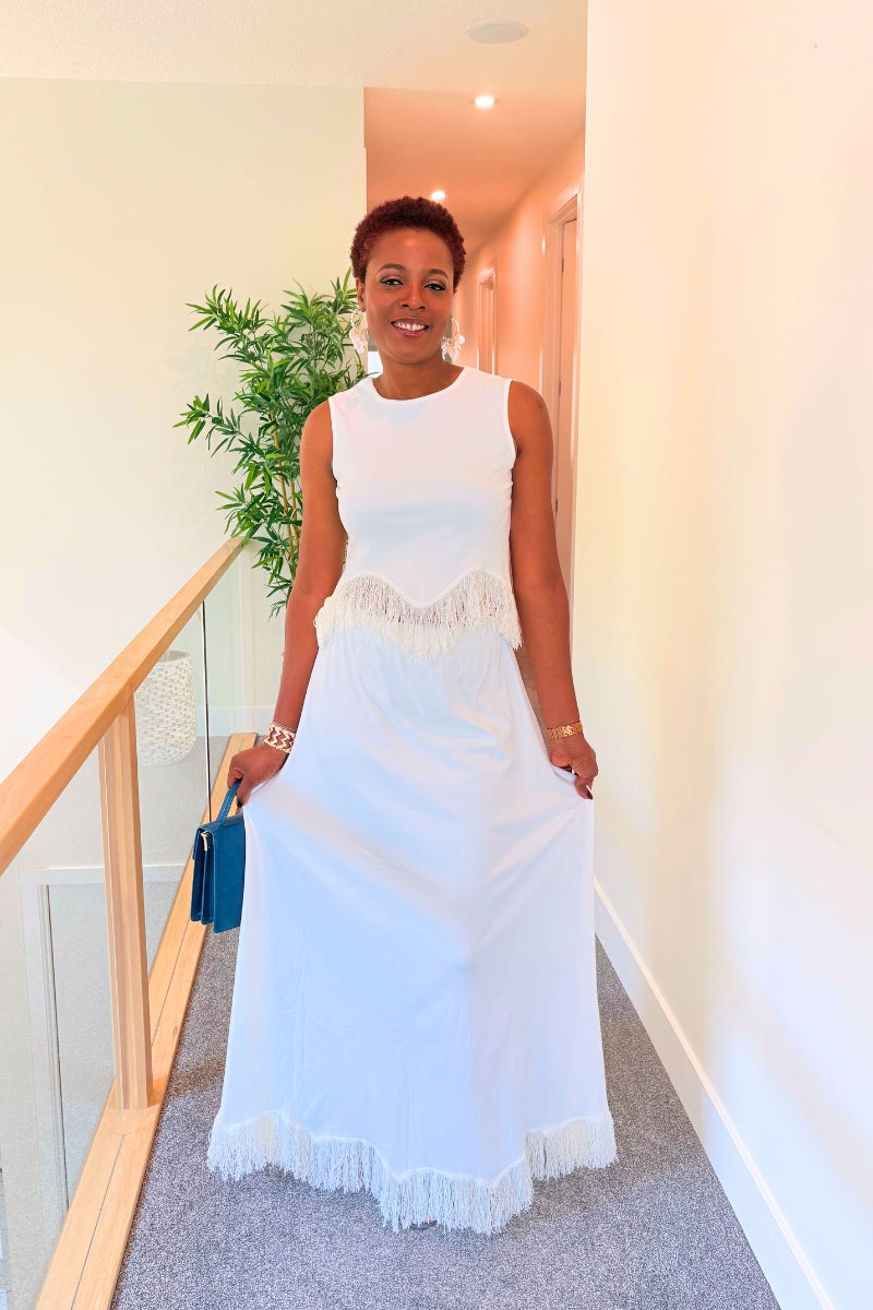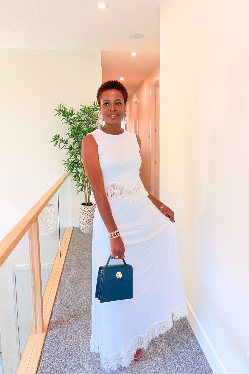 Make a grand entrance with Luxe Charm, a long, elegant 2-piece fringe maxi skirt set that’s all about drama, style, and effortless comfort. Crafted from soft knit fabric, this sleeveless show-stopper lets you move, twirl, and shine at every special event. Whether it’s a party, celebration, or any occasion that calls for glamour, Luxe Charm brings the perfect mix of chic sophistication and playful flair.